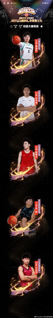 2025CUBAL全明星之夜扣篮大赛名单出炉,除了我们熟悉的老朋友,曾多次参加名校邀请赛且获得名次的上海交大姜宸轩之外,我们将目光投到联赛...