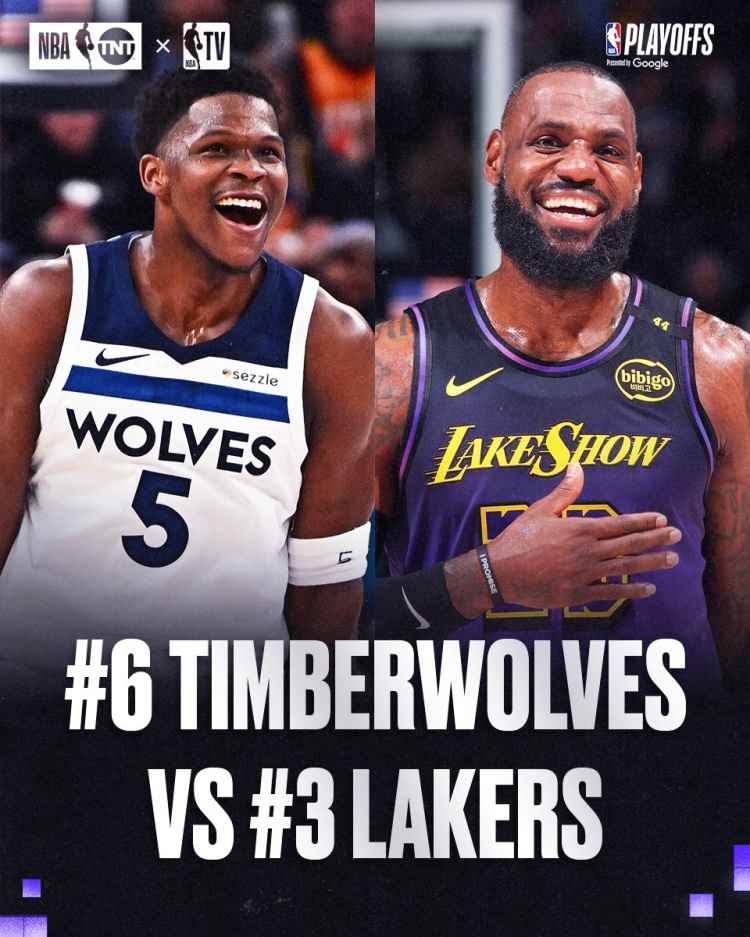 4月16日讯 今日NBA官方公布了湖人(3)vs森林狼(6)系列赛的完整赛程,双方的首战将于4月20日早上8:30在湖人主场进行。