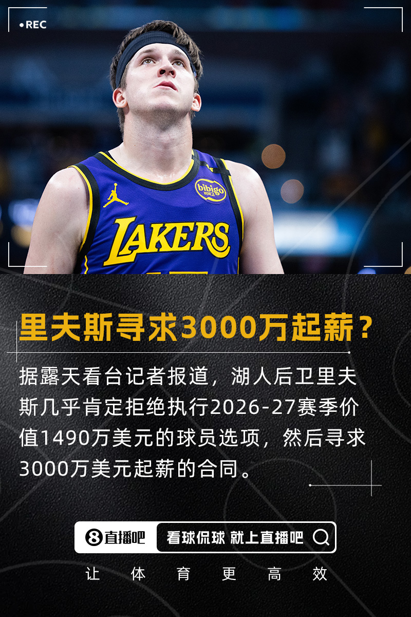 里夫斯此前和湖人签下4年5383万美元的续约合同,合同还剩下2年,2025-26赛季薪资是1394万美元,2026-27赛季则是价值1490万美元的球员选项。