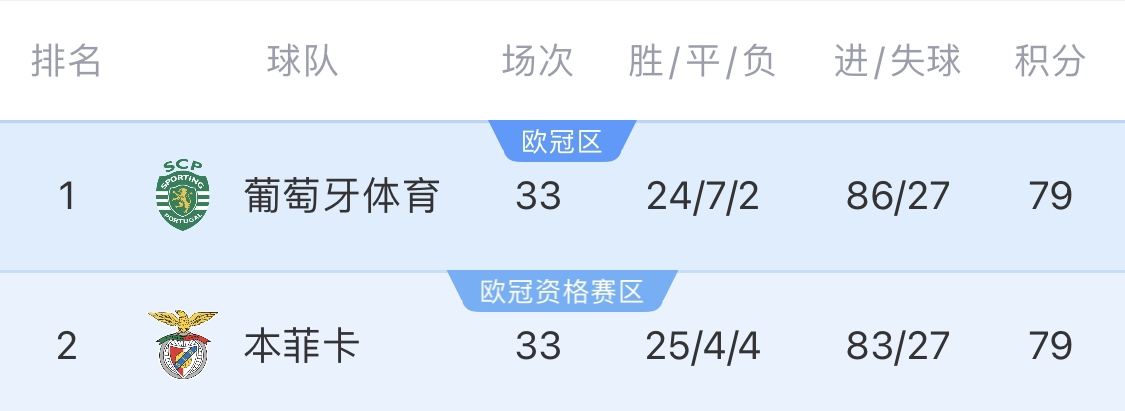 约克雷斯末轮还要争冠,葡体&本菲卡同积79分