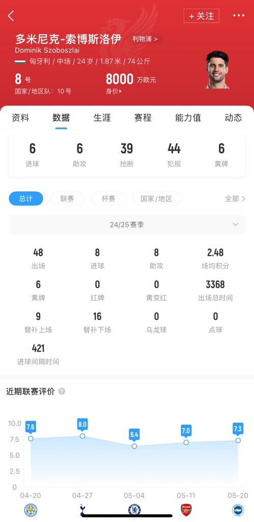 索博斯洛伊:不差,但还能更好。永远都有提升空间。我告诫自己永远不能满足。除非能达到25-30次进球参与,同时赢得英超和欧冠,这样的赛季才会让我真正满意。那会很美妙。