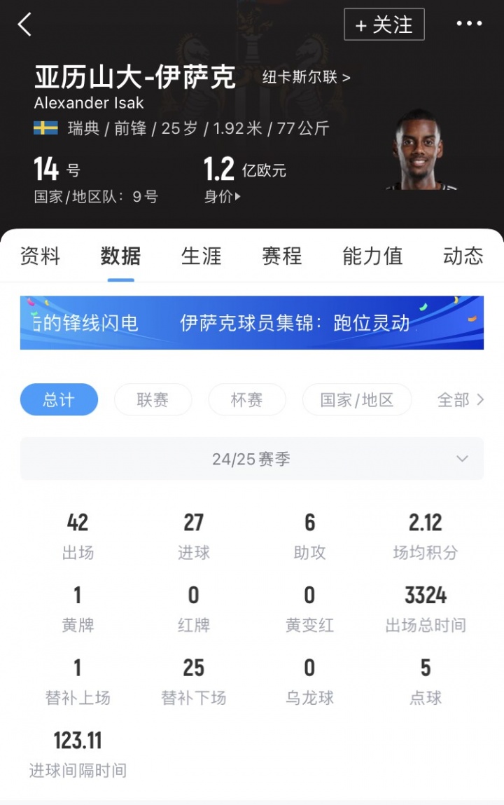 伊萨克与纽卡的合同还剩3年,纽卡已经开始寻找替代者,目前他们的立场仍然是伊萨克非卖品。