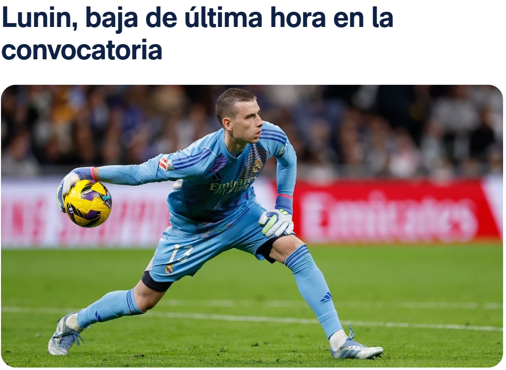 05月14日讯 皇马官方公布球员伤情公告,门将卢宁在训练中右手受伤,退出本轮西甲名单,弗兰-冈萨雷斯递补入选。皇马官方公告:卢宁由于在...