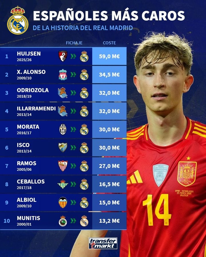 5900万欧!怀森超过阿隆索,成为皇马引援费用最高的西班牙球员